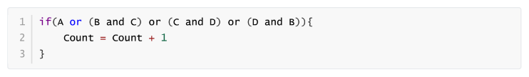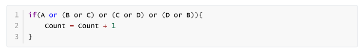 The following pseudocode is executed using the “Scores” dataset. At the end of the execution, variable Count captures the number of students whose total marks are more than the average (of total marks) of entire dataset but have scored below the subject average in atleast two subjects. Assume that the variable AvgT holds the value of the average total marks. Similarly, the variables AvgP, AvgC and AvgM hold the value of the average marks of Physics, Chemistry and Mathematics respectively. Choose the correct code fragment to complete the pseudocode.It is a Multiple Select Question(MSQ).