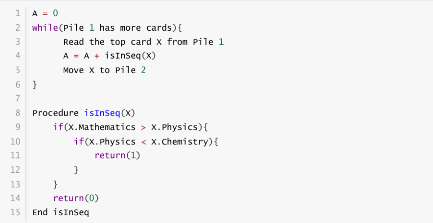The following pseudocode is executed using the “Scores” dataset.(MCQ)