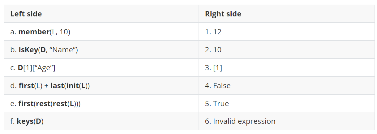 Let L be a non-empty list of integers, and D be a non-empty dictionary which are given below: